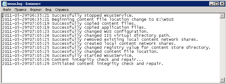 Вам потребуется указать новую папку для базы обновлений (она уже должна быть создана), путь и имя для файла журнала, в котором будет вестись лог переноса. Отдельного пояснения стоит параметр -skipcopy, он позволяет перенести структуру базы обновлений не копируя сами обновления, это обосновано, например, при некритическом отказе диска (посыпался), когда копирование данных сопряжено с определенными проблемами. В этом случае отсутствующие файлы обновлений будут скачаны при ближайшей синхронизации.