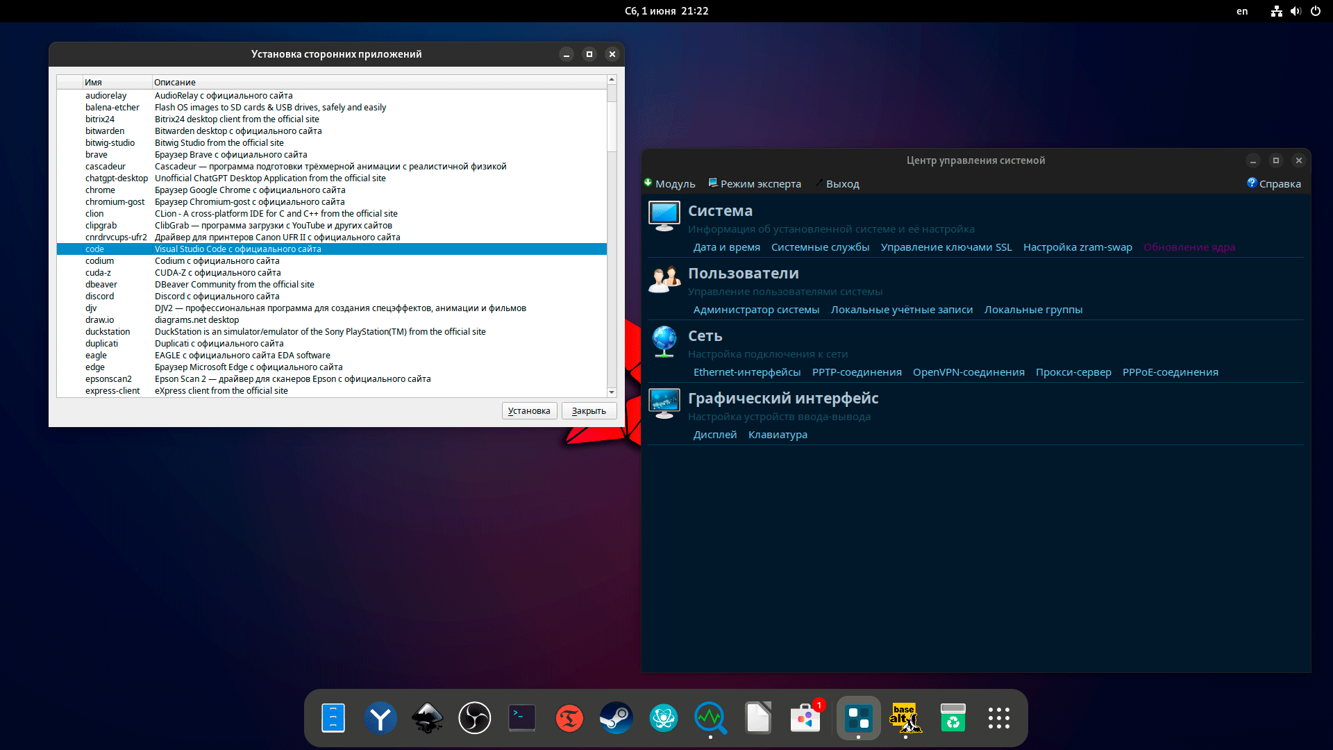 Для настройки системы доступны стандартные инструменты GNOME, а также Alterator, отдельного внимания заслуживает утилита App Install, которая является графическим интерфейсом для EPM и позволяет устанавливать сторонние пакеты, о которых мы говорили выше.