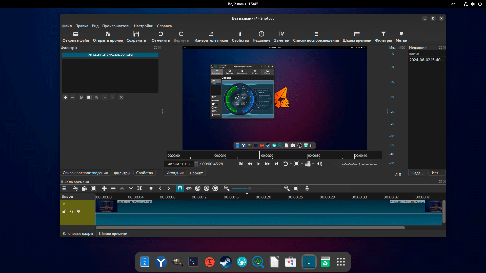 Полученный материал можно сразу отредактировать с другом приложении - видеоредакторе Shotcut. Так что для любительской работы с мультимедиа все инструменты в системе есть, и они работают.