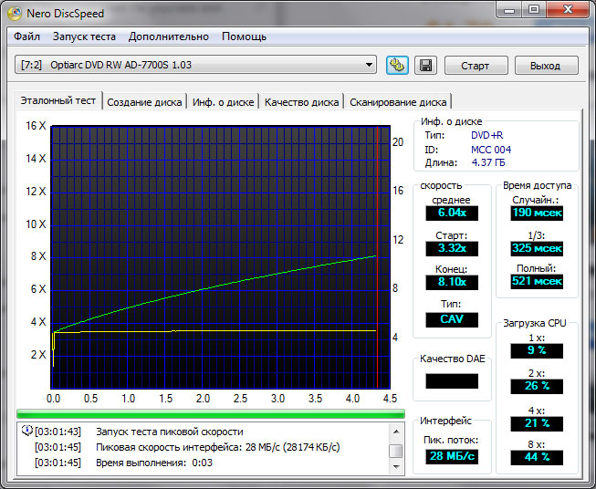 Уже первые результаты показали, что не все приводы одинаково работают с разными типами дисков. Так внешний Optiarc AD-7700S показал свою нелюбовь к штампованным дискам, работая с ними на гораздо меньшей скорости, чем с DVD-R или CD-R болванками.