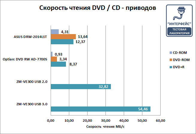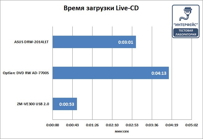 Кроме того виртуальный привод способен вывести работу с оптическими дисками на потенциально новый уровень. Ведь доступ к HDD, даже такому медленному как ноутбучный 2,5" диск, все равно будет гораздо быстрее, чем к оптическому диску. Чтобы оценить преимущества ZM-VE300 на практике, мы провели небольшое тестирование.