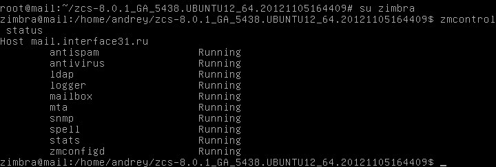 На этом подготовка сервера закончена, можно переходить непосредственно к установке Zimbra. Скачаем дистрибутив с сайта разработчика и разместим архив на сервере, скажем в домашней папке. После чего перейдем в нее и распакуем архив, для ввода длинных имен удобно набрать несколько первых букв и воспользоваться автодополнением по Tab: